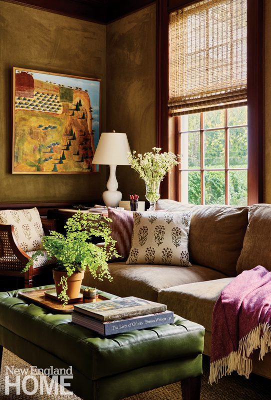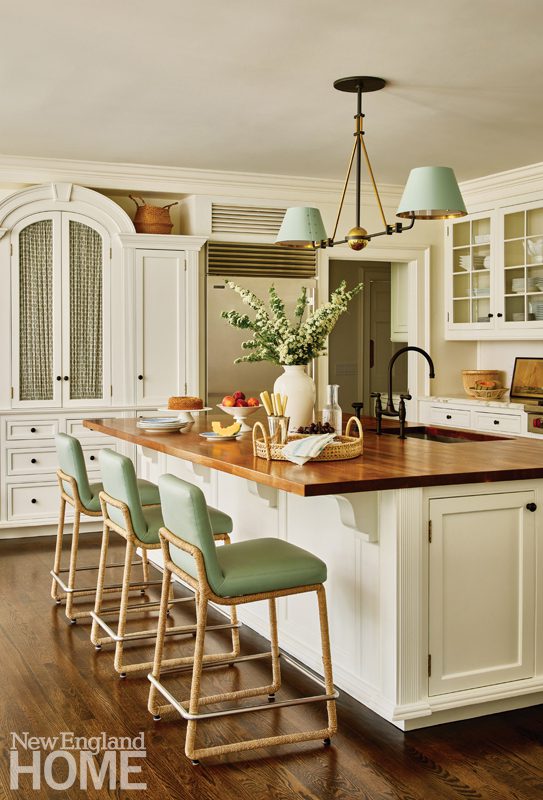 Prior to purchasing the home, the couple had lived nearby and even had the opportunity to see the interior during a house tour. “They always loved the residence, so they snatched it up as soon as it became available,” says Boothby. Conceived by Manhattan-based architect Cameron Clark in 1906, the six-bedroom property features many original details, including the millwork and trim. “My job was to enhance this beautiful residence and make it feel like this couple,” says the designer. “I wanted the decor to be both timeless and current while remaining appropriate for the house.”
