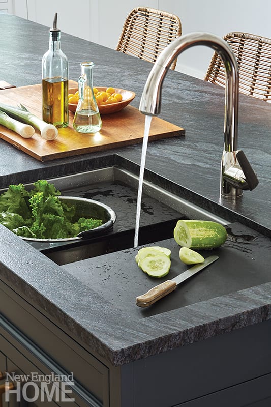 “The client wanted something different from what we usually have in New England,” Millman recalls. “And she didn’t want everybody’s white kitchen.”