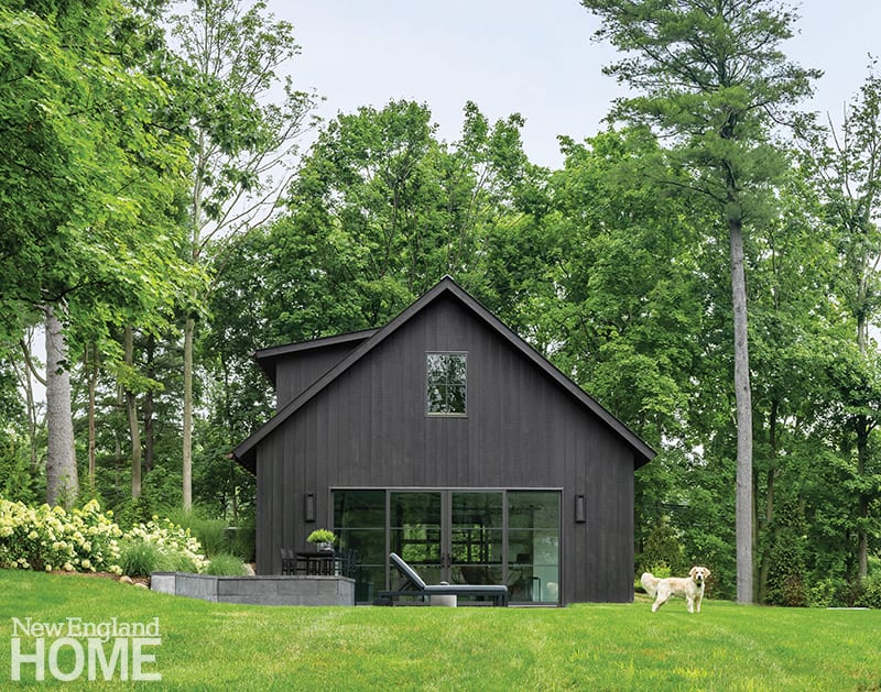 Practicality can sometimes yield artistry, and a guest house designed by Sherman Building Design partners Michael Carpanzano and Lauren Neill on their Sherman property ticks a lot of usability boxes: pandemic-friendly quarters for visiting family, pool house, lake house, a couple’s date-night hideout, workshop, business office, and—not insignificantly—a platform for a rooftop solar-panel array. All of that within a zoning-limited 750 square feet.