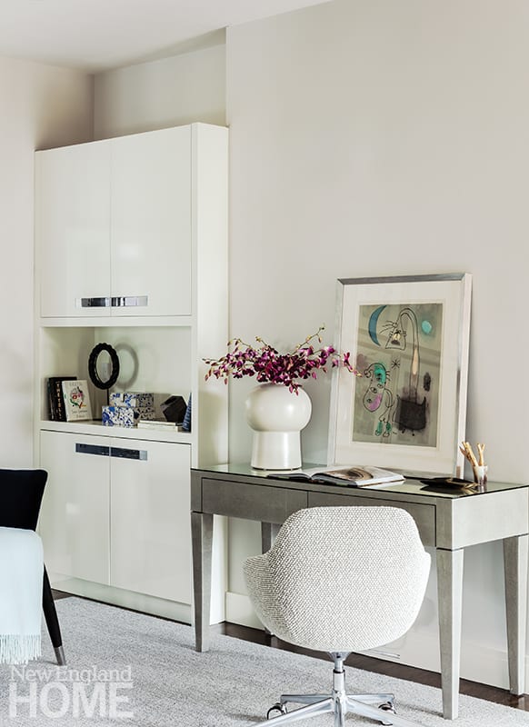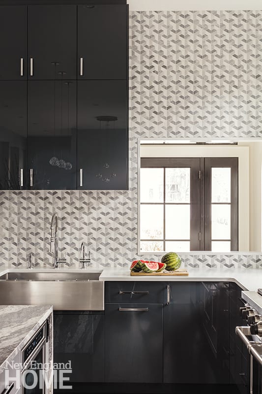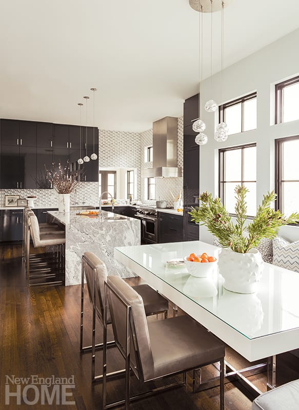 Upon closer inspection, the couple saw that they needed a bit more time and planning to flesh out the interiors of the haven where they would raise their son and daughter. Time—and the guidance of Newton-based interior designer Jill Litner Kaplan and architect Peter Sachs. “The ethos,” Kaplan says, “was to appreciate the integrity of the original house, but to infuse it with all the amenities: sleek and modern meeting traditional.”
