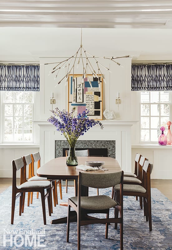 Armed with the house’s original 1917 blueprints, Sachs and the builders from RJ Gallerani and Son Building and Remodeling remade the existing spaces, making slight changes to the first-floor foyer and dining room. The latter now houses the lone set of furniture the family brought with them: a 1960s-era Danish-modern dining set.