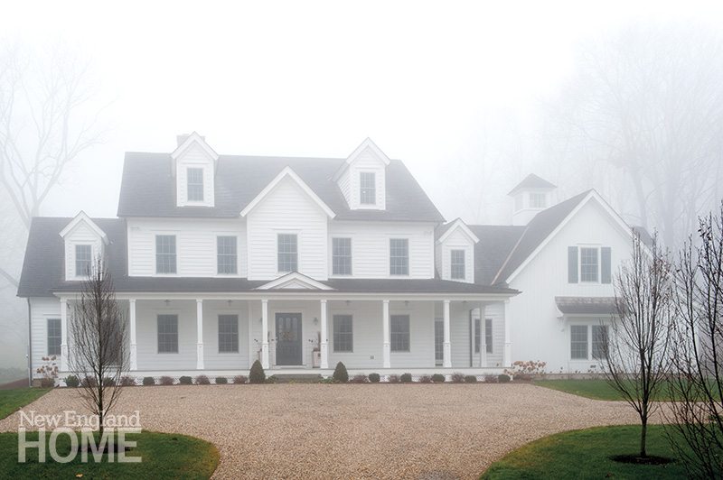 To prevent the house from looking too tall and colonial, Quinlan increased its horizontality by adding a wrap-around porch.