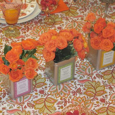 I spotted these beautiful tea tins and knew that I had to have them for my centerpiece. I love the mix of colors and I know I will use them time and time again, to hold flowers on my kitchen windowsill, bedside table, and powder room, (not to mention I am now stocked with a delicious variety of teas).