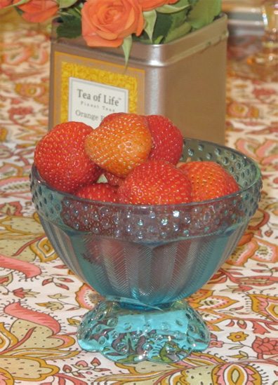 The little blue bowls were a steal (just $1.99!) and are perfect for holding ripe fresh strawberries. They will also be cute for serving sorbet, a summertime fave.