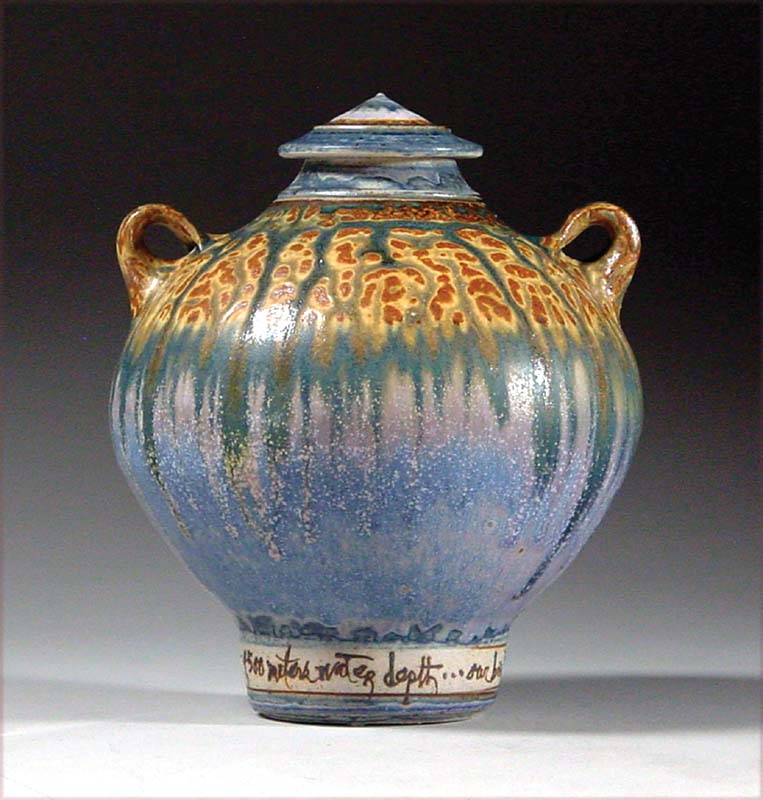 A New Haven, Connecticut, native drawn to Woods Hole by the ocean, the potter received a surprise visit one day from Chris Griner, a research-vessel crane operator she barely knew. He held out a bucket of mud from a box-core sediment collection that he had been about to hurl overboard. Thinking it was too good to go to waste, and with Lederman in mind, he saved the sample and delivered it to her door. Fortuitously, the kiln at that moment was fired, and Lederman, curious by nature, put a glob of the mud in the 1,700-degree fire. To her surprise, it melted. She experimented with it as a glaze, and the results were extraordinary.