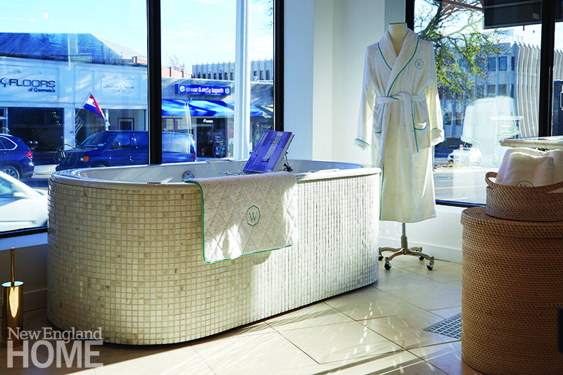 Completing the trio of showrooms is Waterworks. The luxury kitchen and bath source just expanded to a full 6,000 square feet of tile, bath fixtures, vanities, mirrors, hardware, and most recently, kitchens. “Everyone was asking, when are you bringing kitchens to Greenwich?” says general manager Suzanne Blum as she shows off the expanded showroom that includes three kitchen vignettes, a collection of sprawling work tables laden with kitchen accessories, and drawers housing a hefty selection of hardware in leather, wood, and more than a dozen metal finishes.