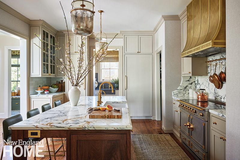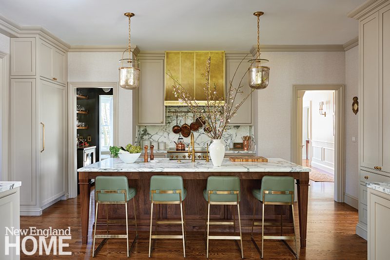 True to the title, Gates’s new home exudes classic elegance. Set on an acre of wooded land in Wellesley, Massachusetts, with a half-circle driveway and a three-story barn, it has a traditional layout and stately front hall. While the mechanicals and windows had been updated, it needed cosmetic work—music to a designer’s ears. Gates had Brookes + Hill gut the bathrooms, give the kitchen a facelift, refinish the wide-plank oak floors, and paint everything. “It was actually the quickest renovation I have ever done,” she says.