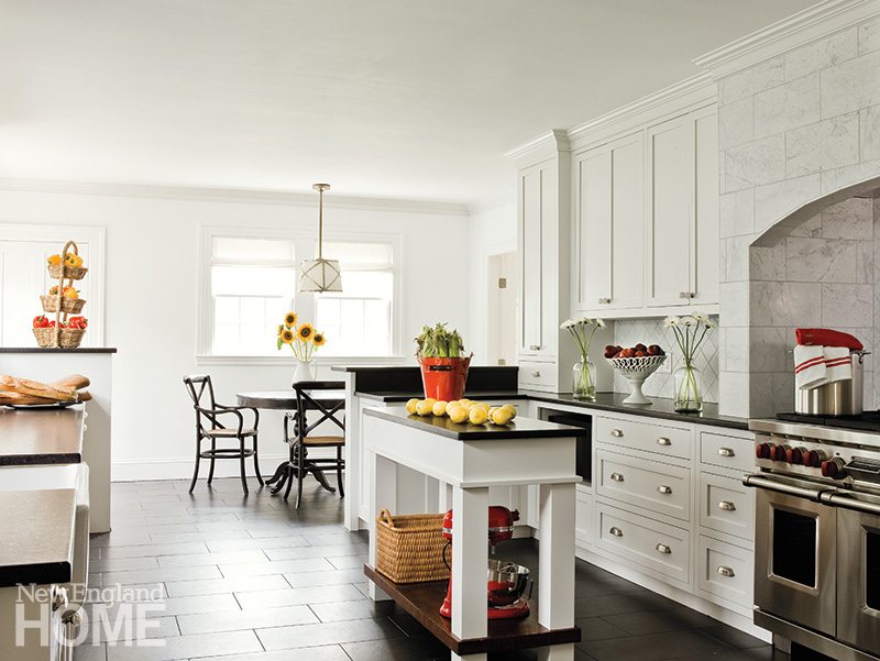 Working together closely, Mullaney and her client spun wonderful ideas that would make the house more open, modern, and glamorous, but above all, more livable. At turns, they were reined in by the builder, Joe Proia of Proia Construction in Walpole, Massachusetts. It was he who told them what was feasible—and what wasn’t.