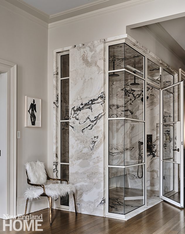 Another important consideration was that every space be utilized—nothing is superfluous. Private quarters occupy the floors above and include a full-floor primary suite, the children’s and guest rooms, and a new copper-clad headhouse and rooftop entertaining area with sweeping views of the Boston skyline.