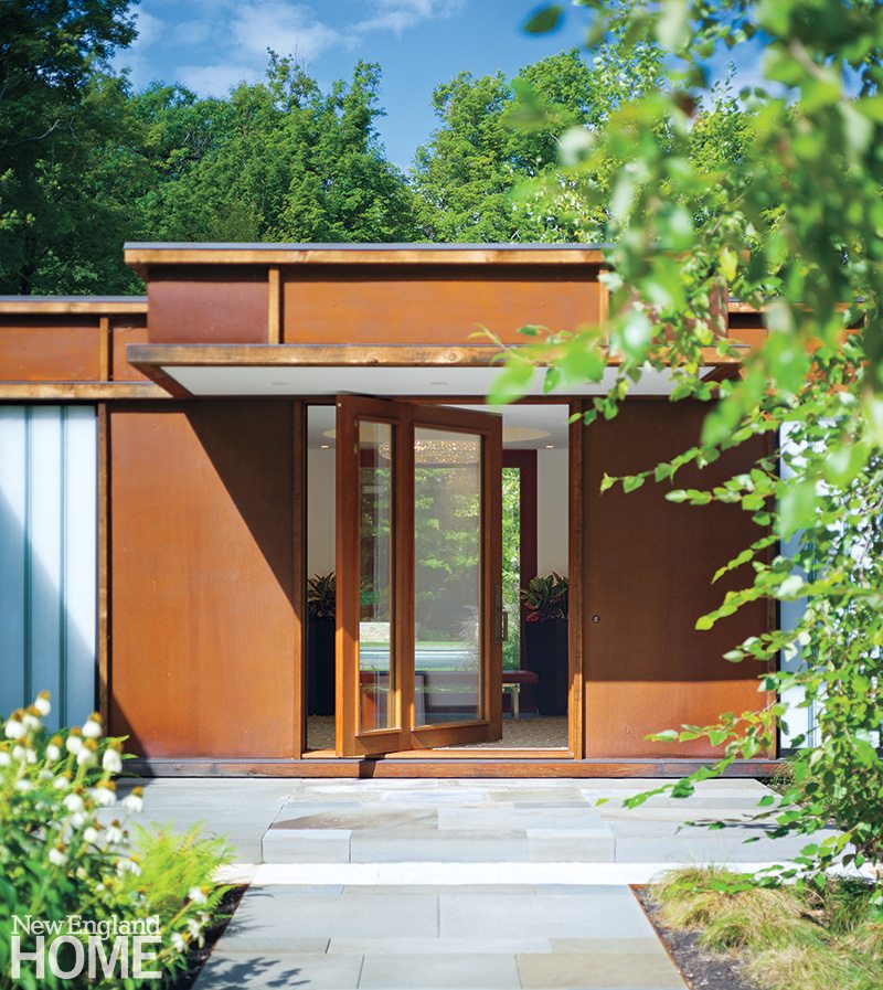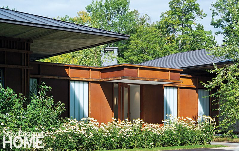 This easy, natural aesthetic extends to the plantings as well, which were masterminded by Burlington-based landscape architect Keith Wagner. “There’s a richness to the materials that Brian used,” he explains, “so our landscape had to have a richness in texture.” Wagner relied primarily on large sweeps of native species—ornamental grasses, ferns, river birch, and red maples—and used them in what he calls a “painterly way” to create a calming effect that stands up to the architecture but doesn’t overpower it.