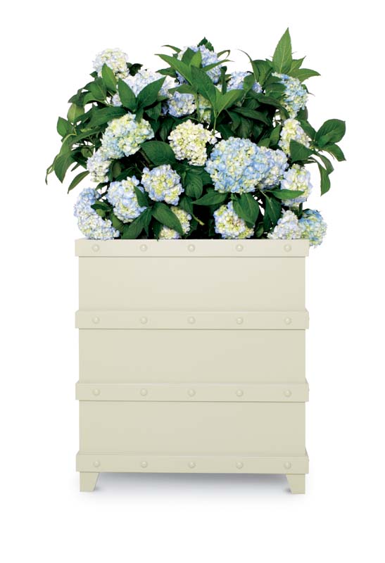 Riveting Both simple and elegant, the Inverlussa Palm Box with Rivets is a heavy-duty aluminum container that looks great in pairs. Use a couple to flank the front door or to announce the entrance to a garden. $5,770. ROY MATTSON, SEA PASTURES