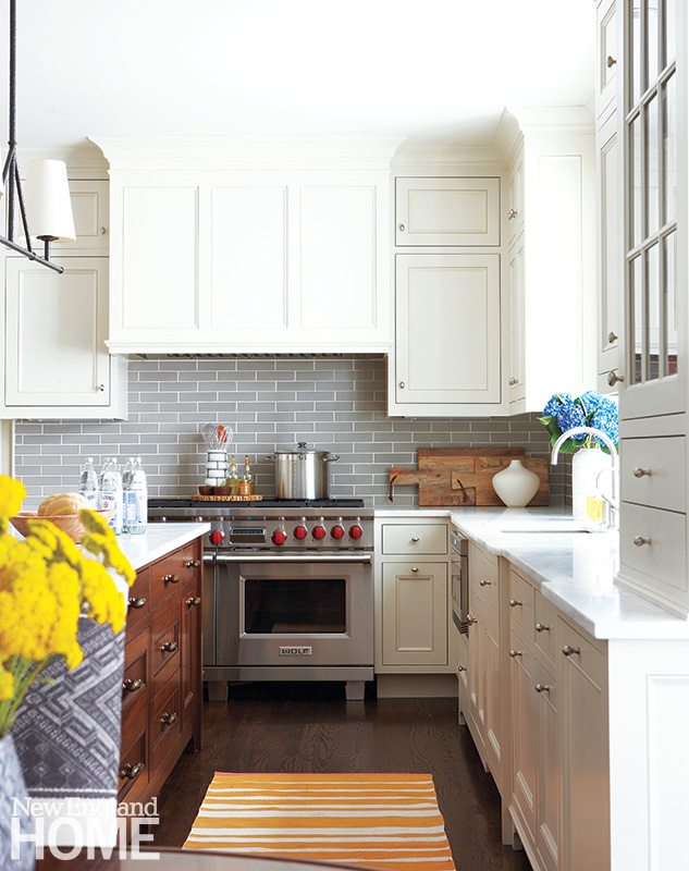 Since the kitchen can be seen from the front hall and opens onto the family room, the owners wanted it to feel as tailored and warm as the rest of the house. “I didn’t want it to look antiseptic or like a hospital,” says the wife.
