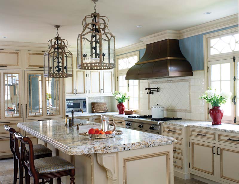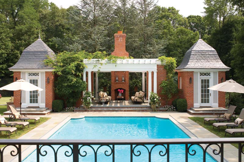 As soon as fair weather arrives, of course, the family zips outdoors to make good use of the pool and tennis court. Twin pool pavilions with romantic bell-shaped roofs contain a kitchenette and bath, respectively. The property’s little pond is amazing, too, claims the wife. “The children get to watch tadpoles grow into frogs,” she says. No doubt they’ll remember that miraculous event—and all their days in this welcoming house—forever.
