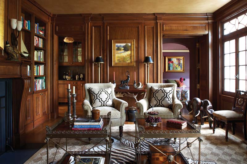 To elevate the interior, the architect added beautiful details, including moldings, trim and delicate transoms above the doorways. It was a glorious rebirth, but the owner at that time had a penchant for all-white rooms, with one notable exception—a plum sitting room! Such a noncommittal palette, as pleasing as it was, downplayed the home’s character. The current owners engaged Greenwich designer Cindy Rinfret to enliven the architecture with colorful new interiors.