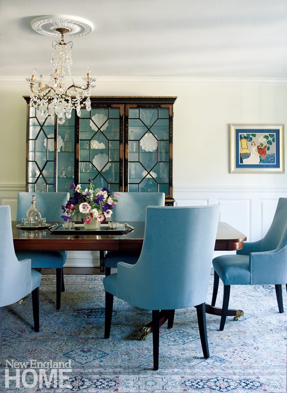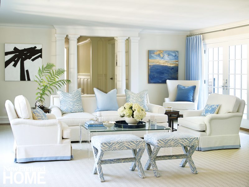 Interior designer Lynn Morgan’s smart updating of colors, fabrics, and furnishings also plays a big role in today’s congenial vibe. For a family who loves the water, a palette of blue and white evokes salt air. Morgan holds the over-cute seashore look at bay, however, conjuring instead casual elegance. “We didn’t want beachy,” says the wife. “We were thinking of that feeling of being dressed up and walking barefoot on the beach.”