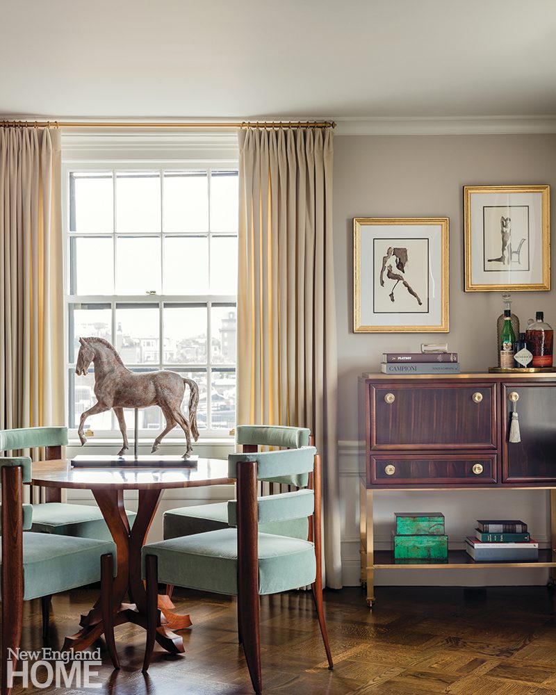 Newport, Rhode Island, residents Linda Sawyer and John Harris craved a weekend pied-à-terre with Boston character and French flair. When they found a penthouse apartment on Back Bay’s Marlborough Street, they fell for the prime location, the private elevator, and the rooftop deck with 360-degree views of the city and room for the dogs to play. The second they closed on the residence, the couple called their designer. Duncan Hughes had thoughtfully reworked their Rhode Island house, and they needed his eye to rethink their dated 90s-era Boston interiors. Their one request? Give it a French spin, without going over the top.
