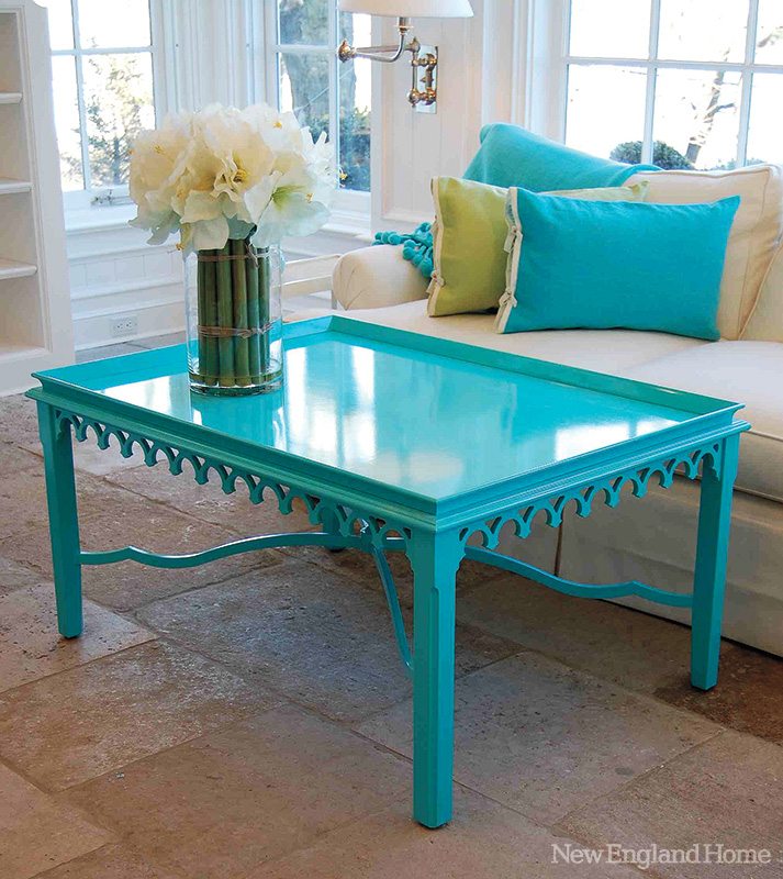 Every table, mirror and lamp is a juiced up, slightly different interpretation—in scale, texture and otherwise—of a historically significant antique. The Charleston mirror, for example, is an unreserved homage to the English Chippendale style. And each item is available in one of sixteen high-gloss lacquer hues, such as Knockout Orange and the bright-coral Fireworks. “The sheen adds to the freshness,” says Brooks, “the way patent leather heels instantly update a dress you’ve had forever.”
