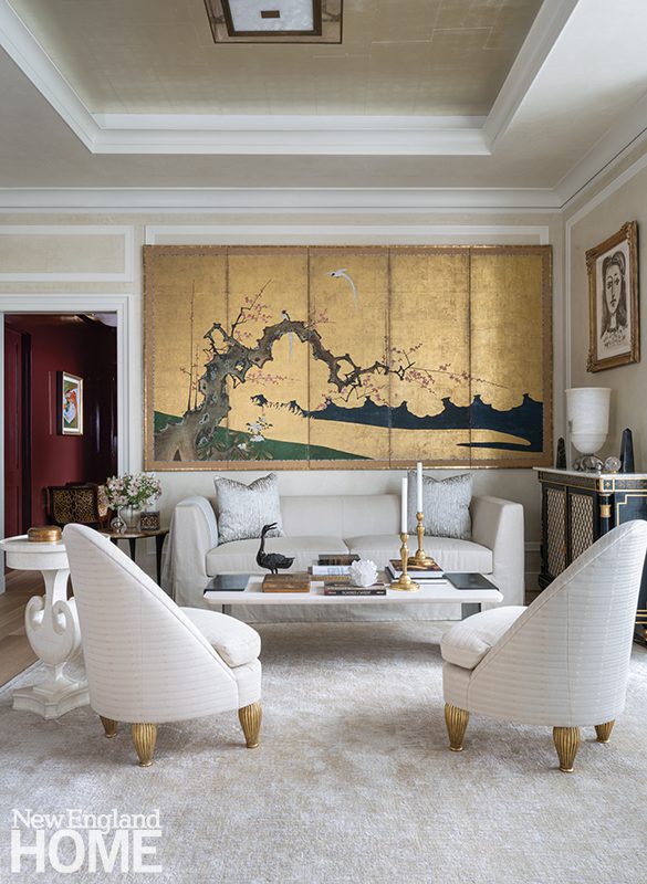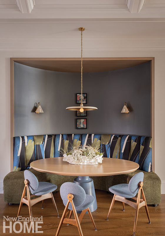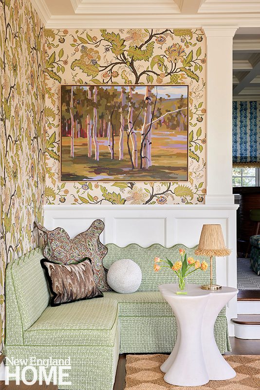 When it came time to move out of their Rowayton summer home, the homeowners planned to leave their lime green couch behind, but, ultimately, they couldn’t bear the thought of it. “It was just so comfortable,” says the wife. Instead, the color became the springboard for their new primary residence in Westport.