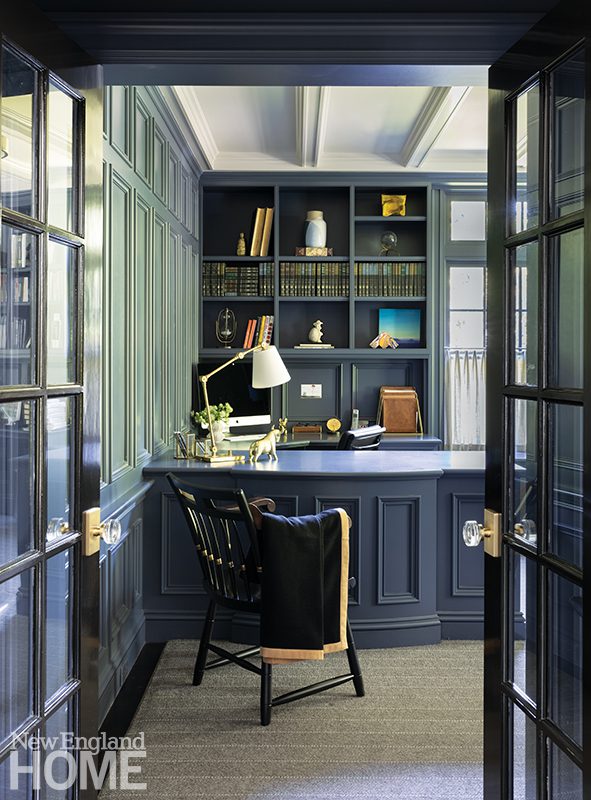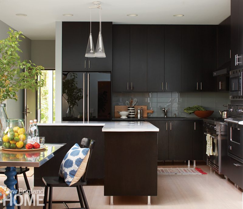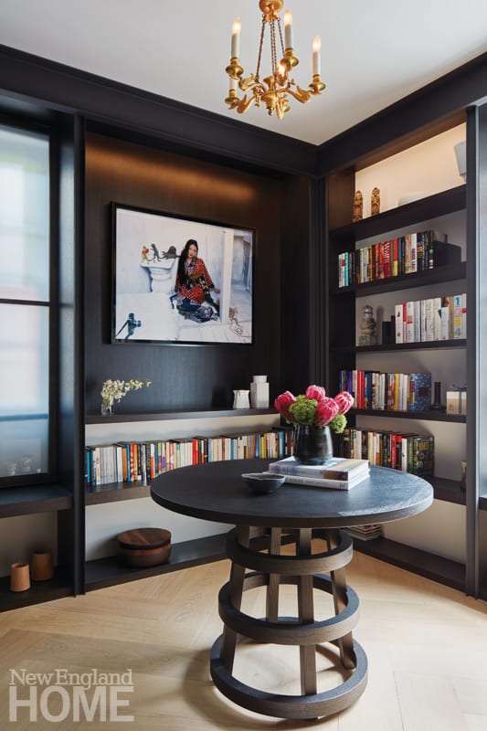 The couple’s portrait collection watches over many rooms in the house, including the Christopher Peacock-designed kitchen. The wife, says interior designer Antonio Pippo, was adamant the kitchen island not include seating. “She didn’t want people gathering around the island,” says Pippo. “She wanted them to be elsewhere, having fun.”