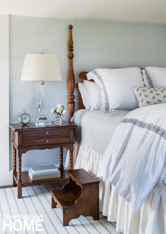 Resting atop a base of bluestone and New England fieldstone, this Cape Cod residence draws from nineteenth-century traditions, but includes amenities such as a ground-floor gym that opens out onto a swimming pool. The balcony belongs to the owner’s bedroom—one of three master suites incorporated to accommodate the owner’s children and their future families.