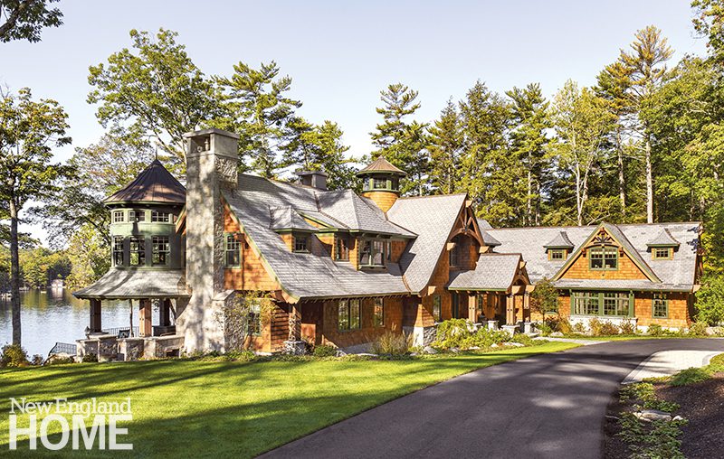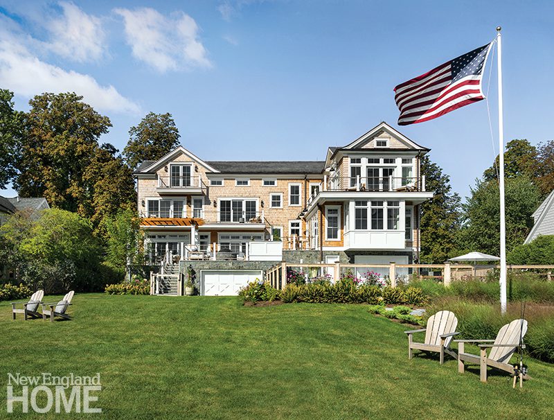 Maryellen McQuade has been visiting Candlewood Lake since she was a little girl. Now she and her family and friends finally get to pull up their own lakeside chair(s). A balcony that comes to a point off the guest bedrooms “plays with the idea of a ship’s prow,” says architect Peter Coffin. “The cable railing mimics the railing on a boat.”