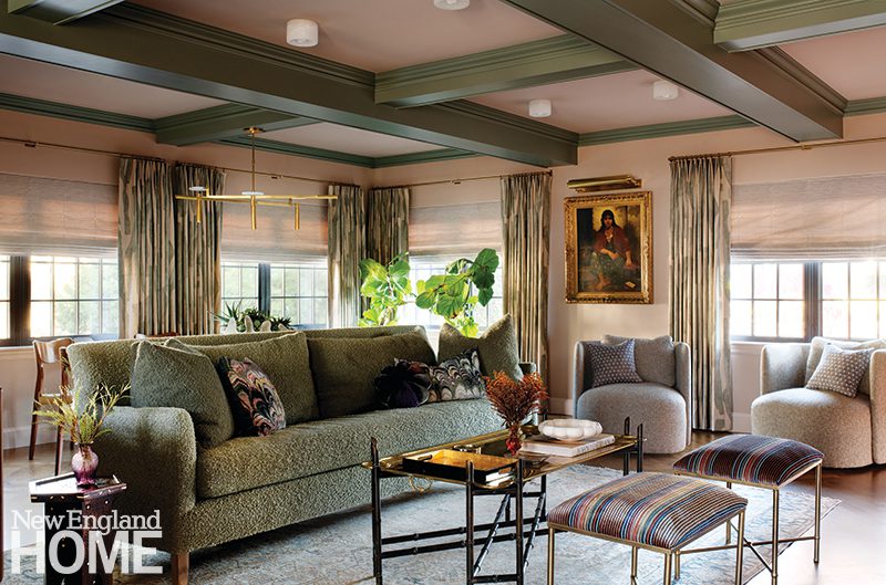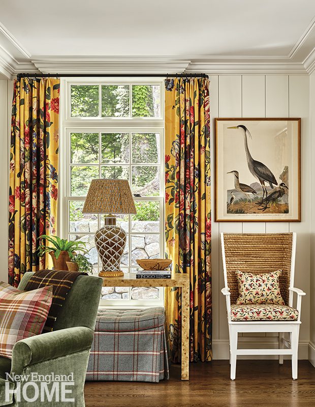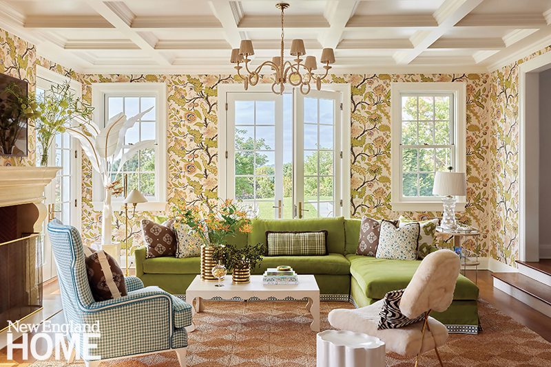 When it came time to move out of their Rowayton summer home, the homeowners planned to leave their lime green couch behind, but, ultimately, they couldn’t bear the thought of it. “It was just so comfortable,” says the wife. Instead, the color became the springboard for their new primary residence in Westport.