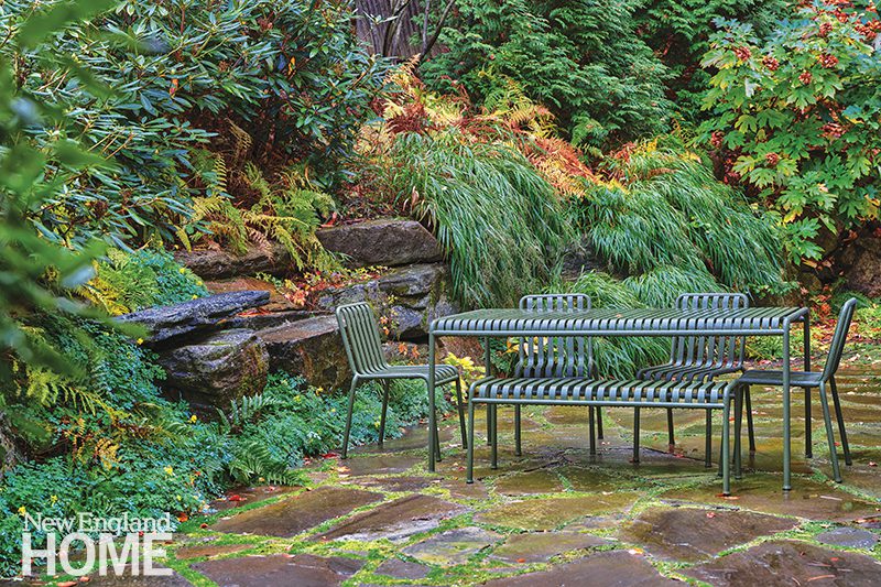 Byers used lots of plantings around the perimeter to conceal fencing and add to the sense of privacy. “We used the concept of borrowed scenery,” she says. “Because we planted in a natural way, with the plants staggered and the species varied, you can’t tell where this property ends and the neighbor’s begins.”
