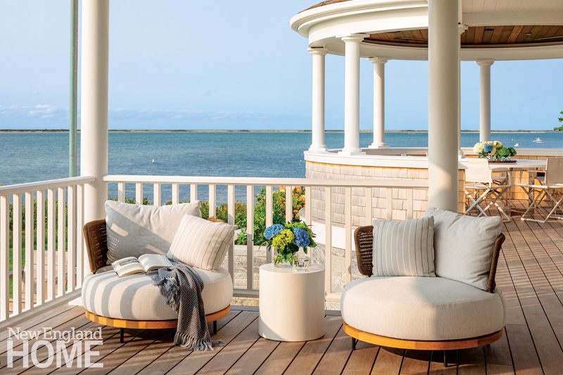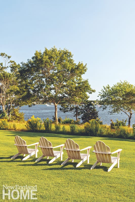 On the terrace, furniture can easily be reconfigured for entertaining. To keep guests safe without detracting from the view, a very fine (“like netting,” says landscape architect Michael Lindquist) mesh fencing with an almost transparent top rail perches on the seawall.