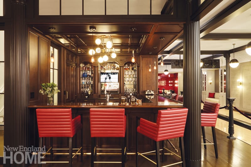 Adding a three-story addition to this New Hampshire home gave its owners the organizational and recreational spaces they needed to accommodate their expanding, multigenerational family. The home receives a lot of traffic throughout the year, so designers included storage spaces for outdoor equipment along with rooms dedicated to indoor activities.