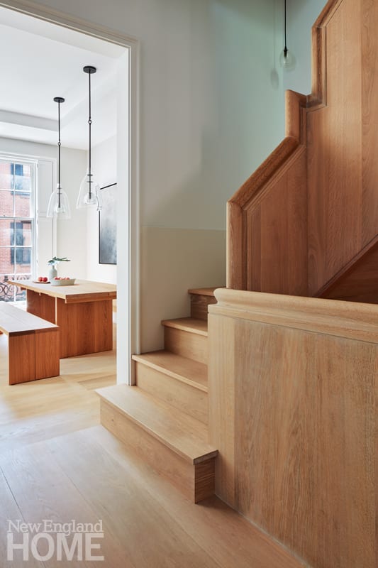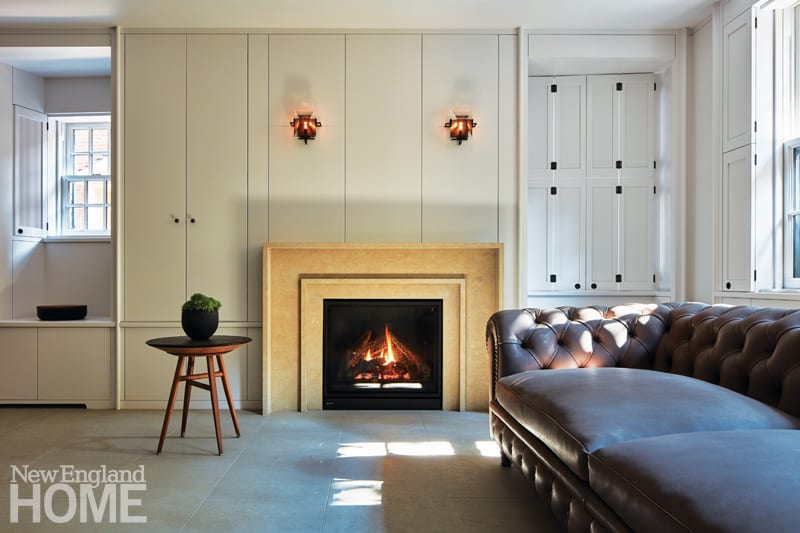 Because the home’s gut renovation by BSA Construction and Payne | Collins Design called for relocating the kitchen and opening it to the formal living room, Hogarty had the uppers of the Christopher Peacock cabinetry painted the same shade of white as the walls. “We wanted to soften the functional aspects of it,” she says, “to make it feel more like millwork than just a kitchen.”