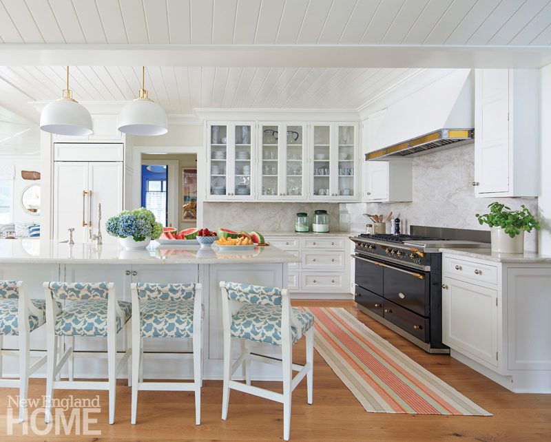 “We didn’t want it to feel too formal, but we also didn’t want it to feel like the beach house where cast-offs are relegated,” she says. Some items—a pair of rich leather French art deco club chairs in the study, a daybed in the kitchen lounge area—are the clients’ long-cherished items. Hilderbrand found other items in favorite haunts from the Cape to South Carolina to Texas to New York, as well as online, to add to the mix.