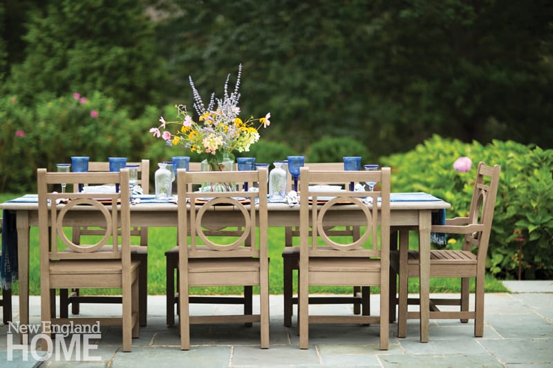 The entry hall leads to a dining room that gets plenty of use. With family and friends coming and going, dinner is usually a large group activity. “It’s never dinner for the five of us. It’s always more like dinner for fourteen,” says the homeowner. Of course, the ample porch and the patio dining area also get their fair share of use, especially on beautiful summer nights where the fun often begins and ends around the fire pit.