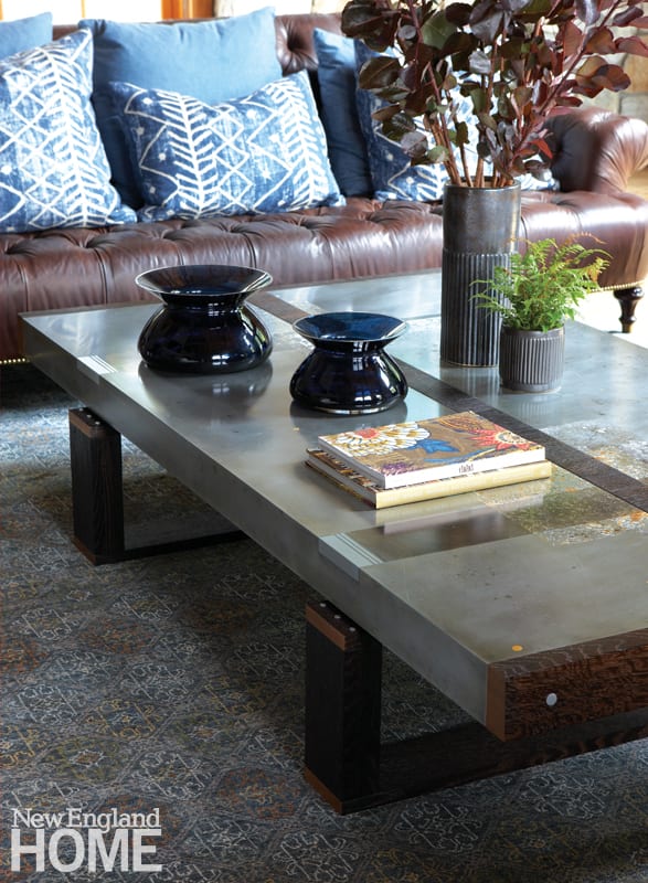 Finlay’s client calls his retreat “the barn.” And while it’s tempting to write off the project as just another “man cave,” the decor defies such easy labeling. “It’s a little more sophisticated and collected than that—and a little more thoughtful,” observes interior designer Tina Anastasia. Although she wanted to honor the structure’s masculine air, she was careful to avoid clichés, opting for a mix of patterns, colors, and provenances that gives the interior an eclectic look.