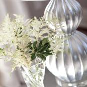 As dramatic as the gray is, the living room feels serene. An overhead chandelier and rock-crystal sconces on the fireplace give off sparkle without being frou-frou and echo the glint of the mirrored coffee table and beaded pillows. A large architectural console lends the room its modern lines on a wall where art might have been lost.