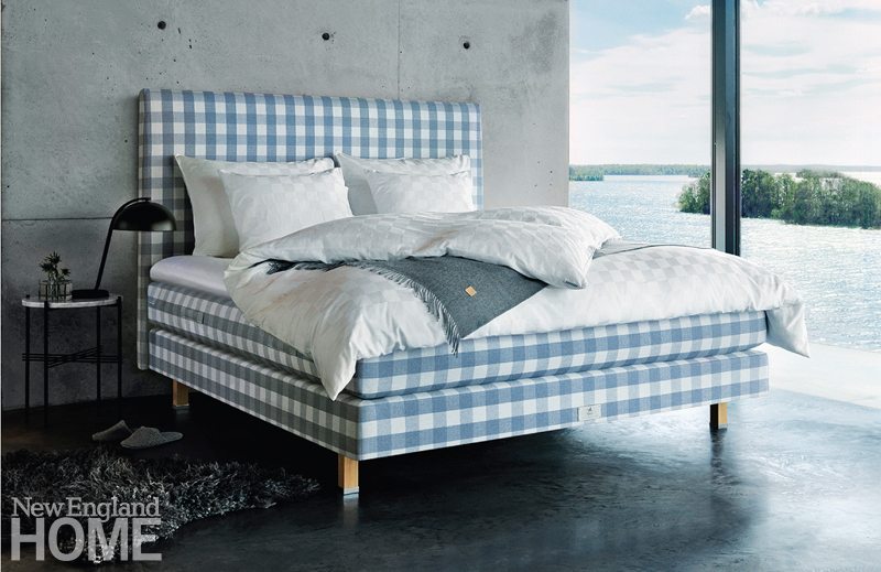 Founded in 1852, Swedish bedding giant Hästens is known for its blue and white checks and for its adherence to traditional techniques and materials. “Hästens mattresses are handmade, have individually pocketed coil systems, and are totally free of harmful products,” explains Matt Steele, owner of the Hästens store on Boston’s Newbury Street. “They have always used horsehair, which is free from allergens. Each hair is a hollow tube that acts like an airway and you are cooled, while it also has capillary action that wicks moisture away. And horsehair has natural curl, so it acts as springs.”