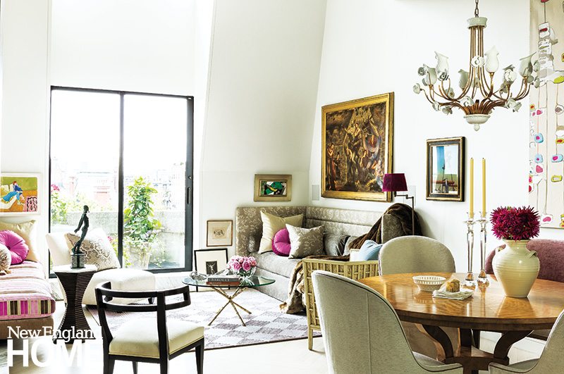 It took only minutes for the new occupants of this top-floor unit to imagine putting their stamp on the space. Enamored with the panoramic views, the central Back Bay location, and the lofty ceilings, they recruited local architect Carlos Ridruejo to help create a state-of-the-art home. The couple brought their own expertise to the project, as well: interior designer Craig Tevolitz is the owner of Platemark Design, and Richard Baiano is president and co-owner of the prestigious Childs Gallery.
