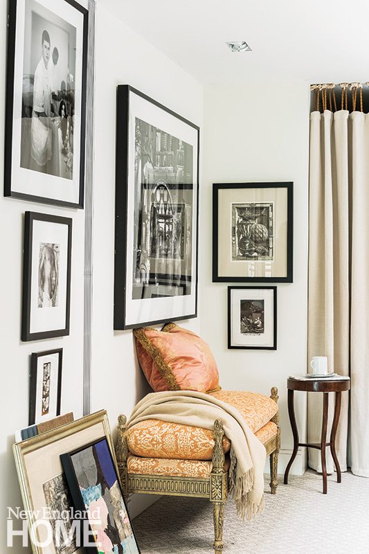 A core part of the men’s art collection is their trove of black-and-white photographs, many of which they display here so they can see them first thing in the morning, last thing at night. As plush as downstairs, the private quarters—meticulously planned marble-tiled master bath and dressing area included—exude sophistication.