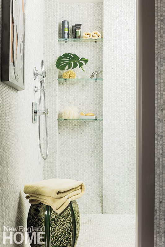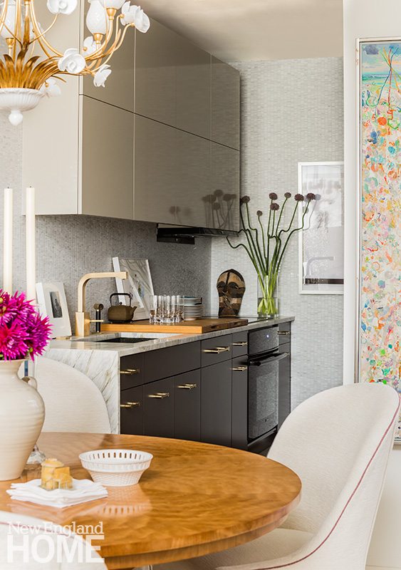 In step with Ridruejo’s concept, kitchen designer Donna Venegas, owner of Boston’s Venegas and Company, skillfully concealed the refrigerator, freezer, and pantry in a nine-by-eleven-foot niche opposite the sink. “It was a challenge, but it doesn’t lack a thing,” she says. When the retractable doors are closed, no one guesses at the marvels (or mess) hidden behind.