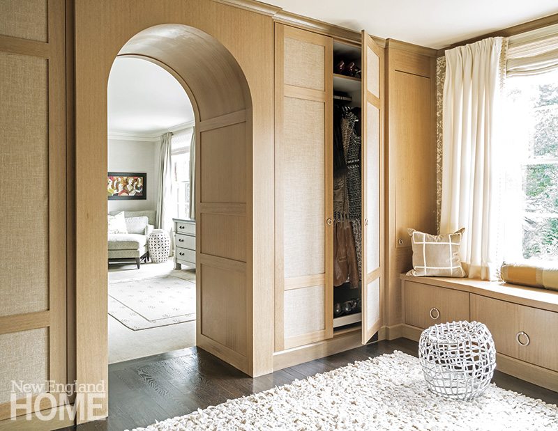 Palumbo enlisted the talents of Boston-based kitchen designer Donna Venegas to enlarge and modernize the kitchen, which now includes a breakfast room. “From the outset, Jen gravitated to the more contemporary vignettes,” Venegas recalls. “She appreciated the beauty of a purely modern kitchen—high-gloss finishes, slab doors, sharp lines—but it wasn’t appropriate for this project. Instead, we developed a softer palette, one that incorporated both modern and tailored traditional elements.”