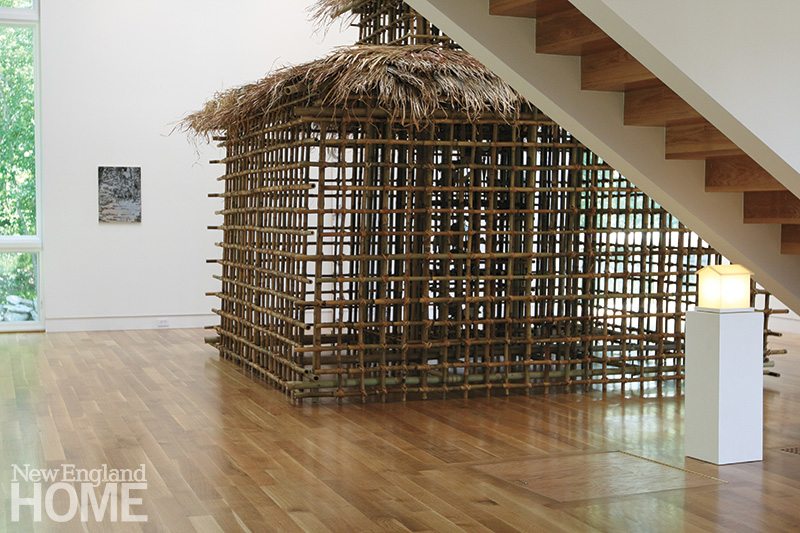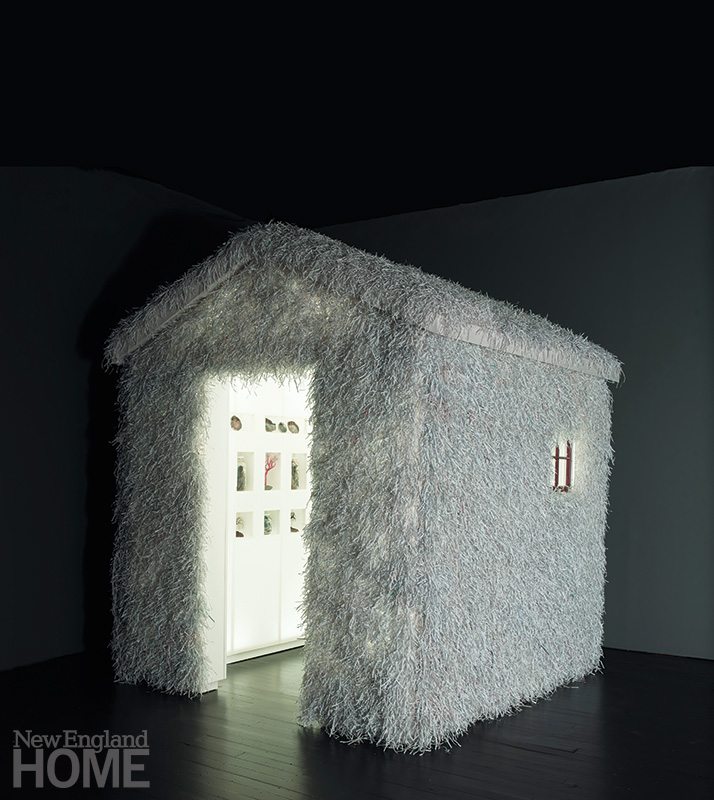 Backes also credits her family for her interest in the iconic house form. “It may be subconsciously related to the fact that my paternal grandfather was an architect,” she says. But while an architect is focused on structure and function, Backes explores not only the notion of home, but also the intersection of nature, culture, and art. Since 2007, she has built some eighteen structures bestowed with literal monikers such as Cardboard House, Paper House, and Bamboo House. As their names suggest, their makeup varies, but they all provoke thought and stir the imagination.