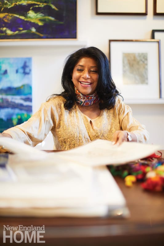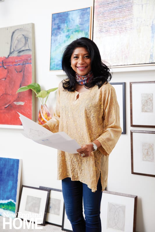Interior designer Vani Sayeed creates artwork and interiors from her Newton, Massachusetts, studio.