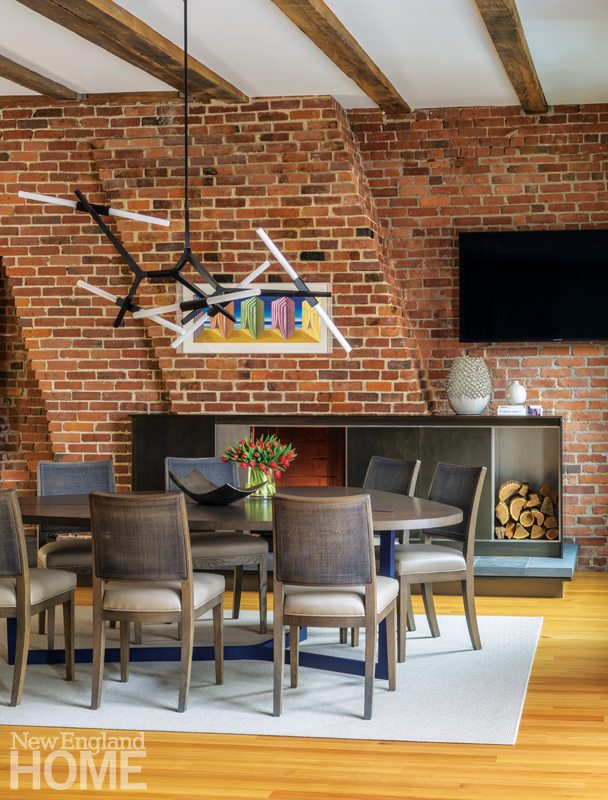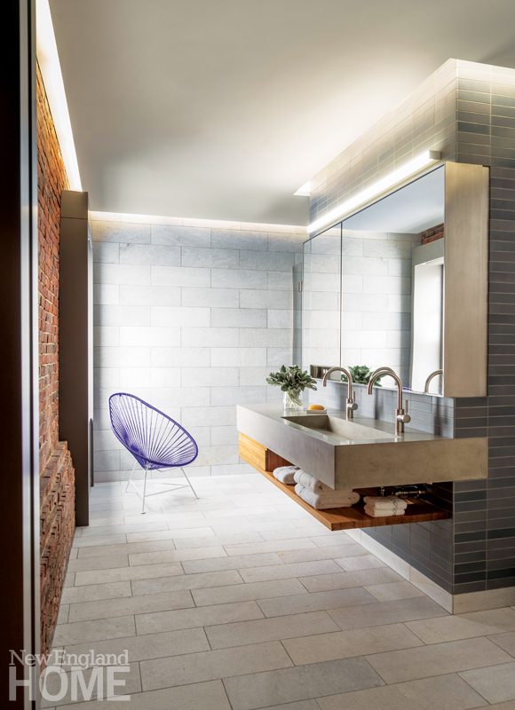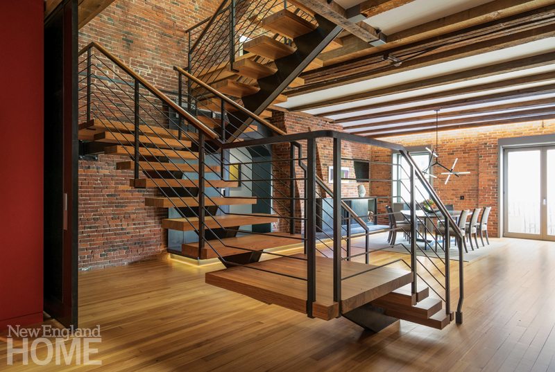 Their stunning two-story pied-à-terre is in one of the old industrial wharf buildings that overlook Boston Harbor. It represents a remarkable collaboration among design professionals, all of whom sought to celebrate the space’s industrial roots while meeting the clients’ criterion that it refer to Boston and their own New England roots. “It’s low tech/high tech,” says architect David Hacin. “They were attracted to this space because it was where both of their passions could be addressed. It was important to them to preserve the eccentricities of the space. Utilitarianism is the aesthetic.”