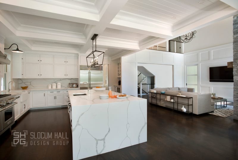 In a recent project, the team at Slocum Hall built an idealized version of a modern farmhouse. The exterior of the home features the simple and familiar farmhouse silhouette, with soaring ceilings and an open kitchen on the interior.