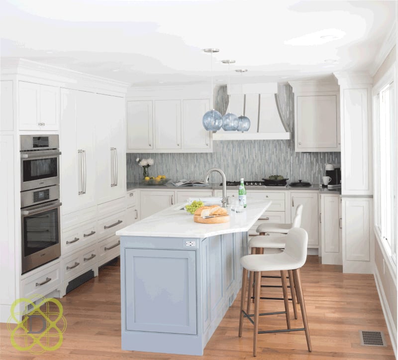 “People are inundated with trends now. Take white cabinetry for example–when a client comes to me and says they want white cabinets, I say let’s explore that, but let’s explore some other ideas too,” she explains. “We have a project in Connecticut where we are installing warm white cabinets, but the built-ins in the dining space, which you can see from the kitchen, are apple green, and the pantry is a beautiful slate blue, and the mudroom is a taupe-meets-gray color, so there is plenty to play up the white.”