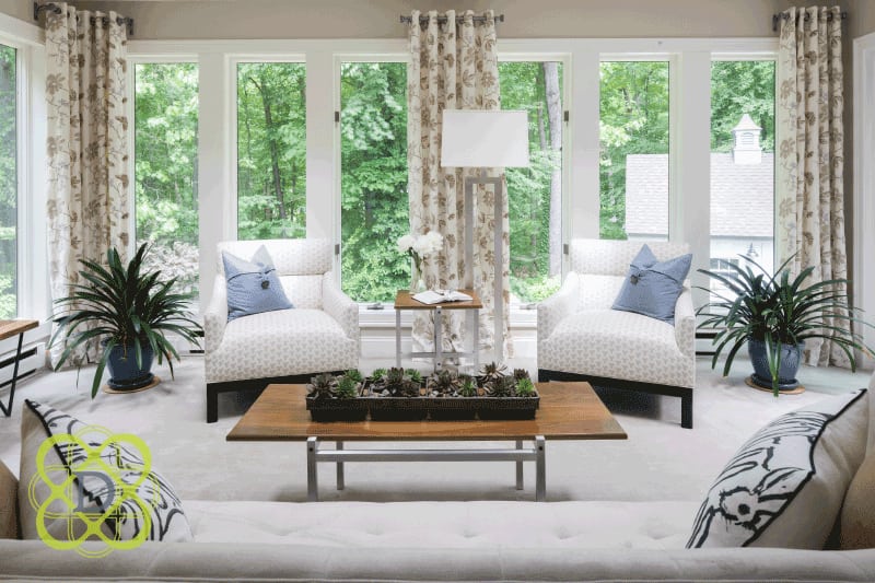 In fact, one of the of the biggest benefits of working with an interior designer is proper planning and execution: you’re teaming up with someone who can spot problems you’d never anticipate, or recommend solutions you’d never dream up. “Take linen drapery panels, for example,” says Davenport. “They look beautiful when you first put them up on the window, but if you’re living on the Connecticut shoreline, and you’re going to keep your doors open on the beautiful summer nights, you’ll probably have humidity in the air, and those draperies are going to grow. They’ll suddenly be two or three inches longer, dragging on the floor.”