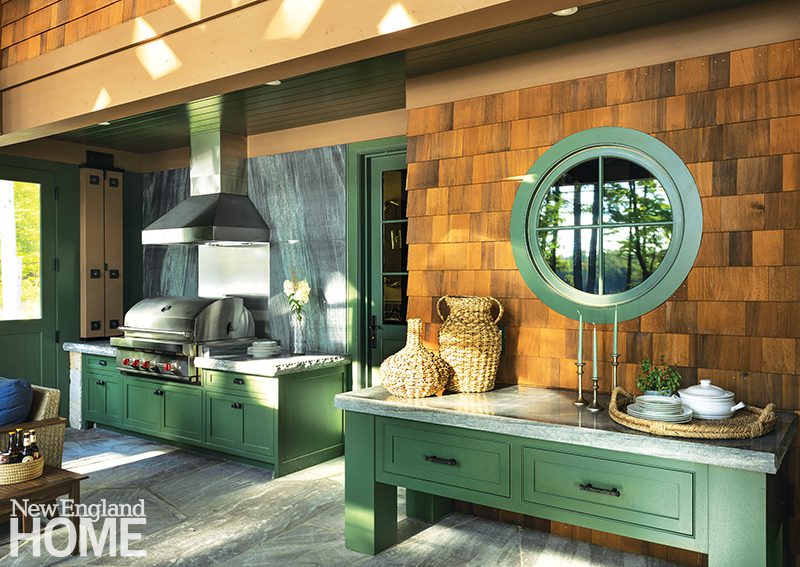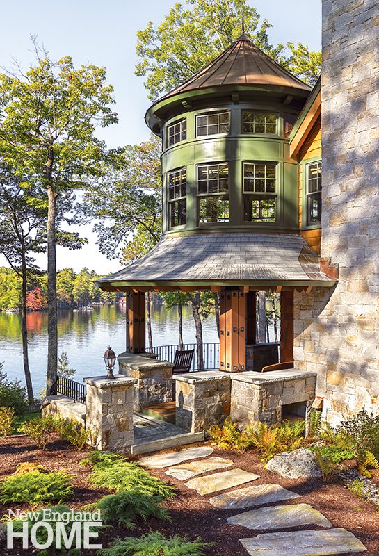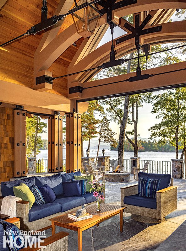 “It’s a porch, but it’s more—a lot more—than just a porch,” says architect Rob Carty with a broad smile as he describes the novel open-air space his firm, TMS Architects Interiors, designed for a vacation home overlooking Lake Winnipesaukee in New Hampshire. “It’s really an outdoor living room.”
