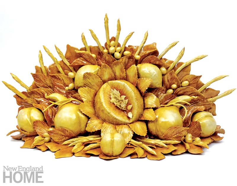 Thus she discovered the porcelain sculpture of Anne Gordon, a twentieth-century blueblood British artist who made trompe l’oeil fruits, vegetables, leaves, cockatoos, and animals beloved by the cognoscenti, who used them to decorate mantels and dining tables. “When I realized that these fruits and veggies were new, I had an epiphany,” Houston says. “ ‘I want to do this!’ was all I could think of.