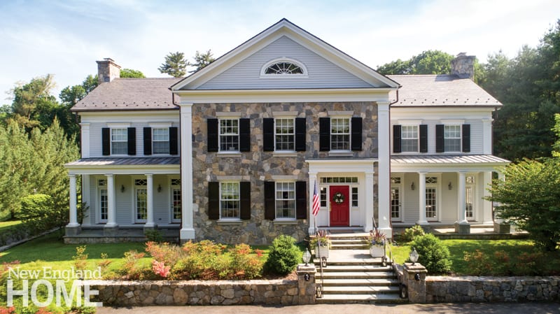 Conceived nearly twenty years ago by New Canaan architect Judy Larson, the house recalls an early 1800s New England Greek Revival. “I drew inspiration from historic homes in Litchfield County, Nantucket, and Vermont,” says Larson.