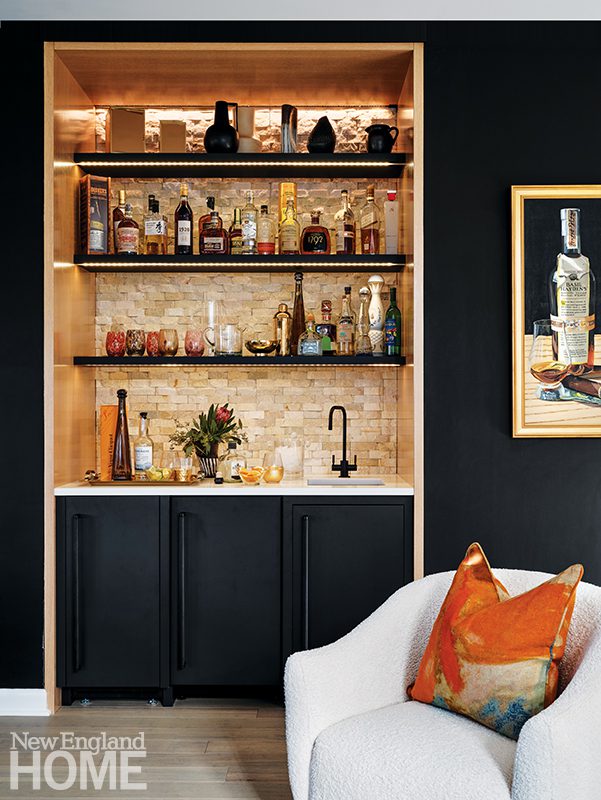 Burke prides herself on personalizing spaces in this way and, of course, incorporating her clients’ wishes. In this case the couple only asked for an open plan (fewer doors!), a big, loungy couch, and a bar. Three things the designer could easily get behind. “Every project needs a recessed bar,” she says. “It’s where you entertain; it says come and stay a while.”