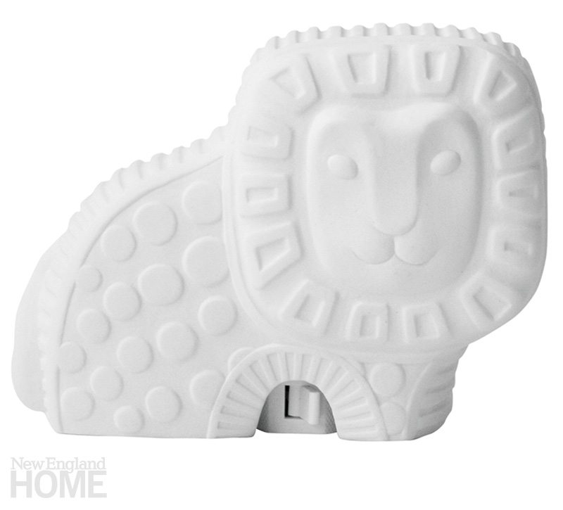 Light Up Their Lair. With Jonathan Adler’s adorable lion nightlight, there’s no reason to be afraid of the dark. The matte white porcelain light comes with a five-watt bulb. $48. Jonathan Adler, Boston, (617) 437-0018, and Chestnut Hill, Mass., (617) 232-0502, jonathanadler.com